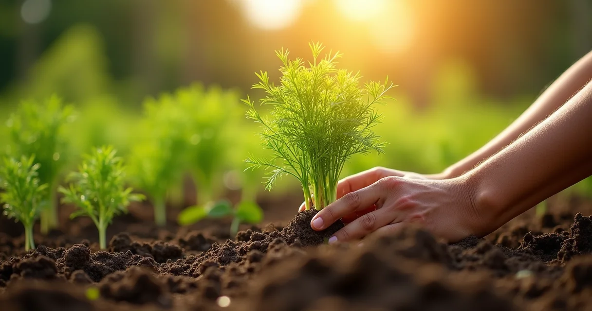 Em Destaque 2026: O endro (dill ou aneto) possui uma raiz longa e delicada, preferindo ser plantado diretamente no local definitivo, pois não lida bem com transplantes.