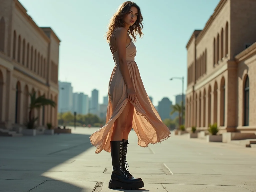 Contraste Romântico: Vestido Leve com Coturno