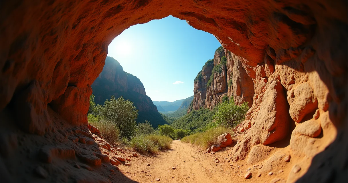 A formação rochosa que lembra um túnel ou portal, permitindo a passagem sob a pedra.